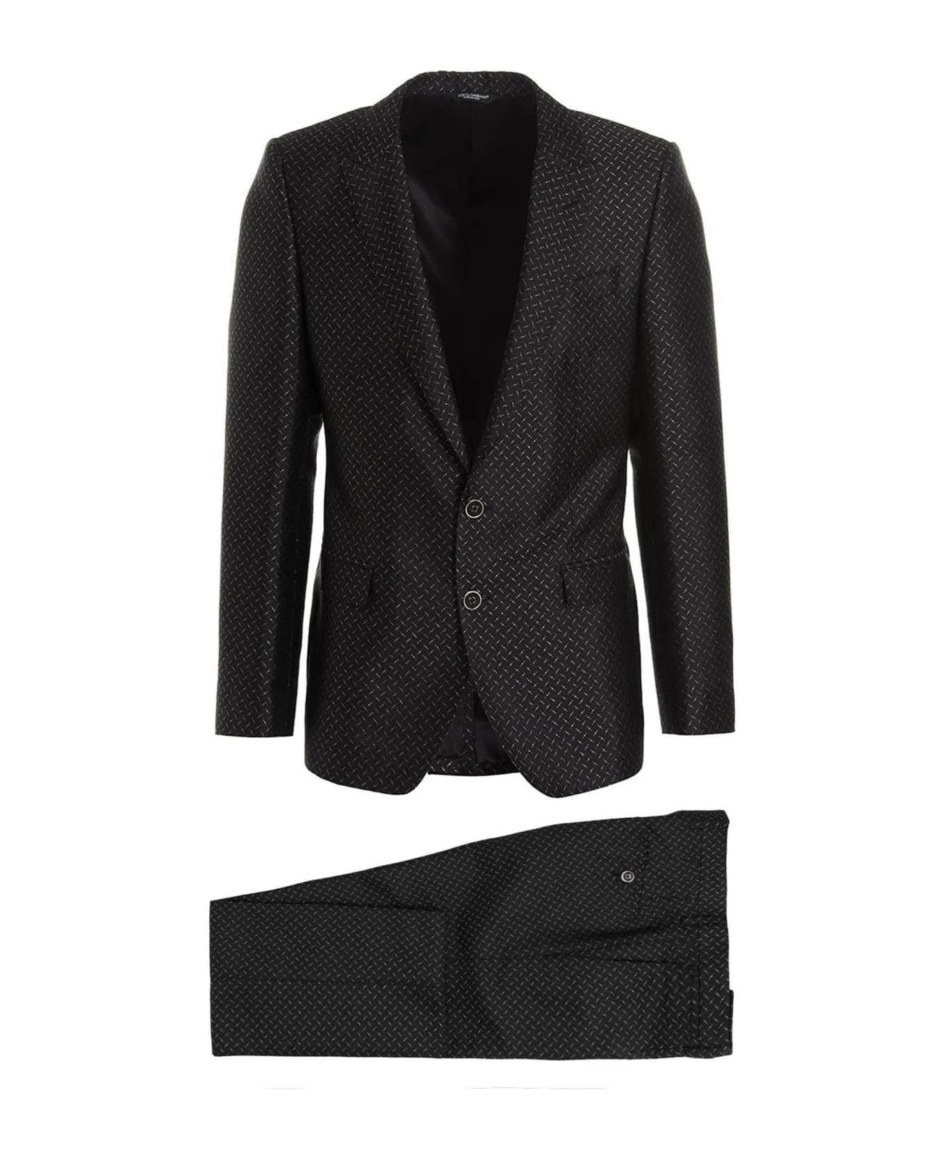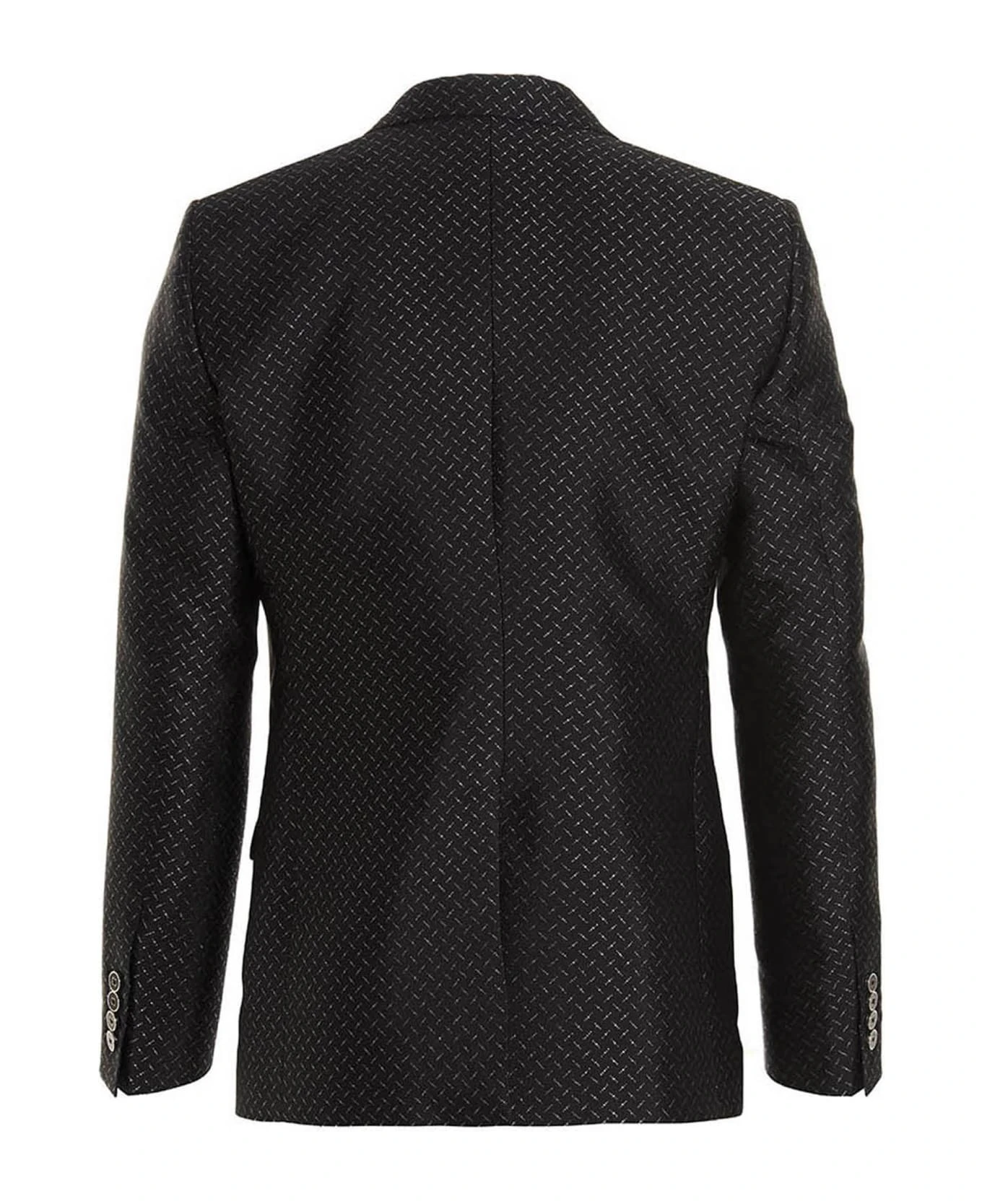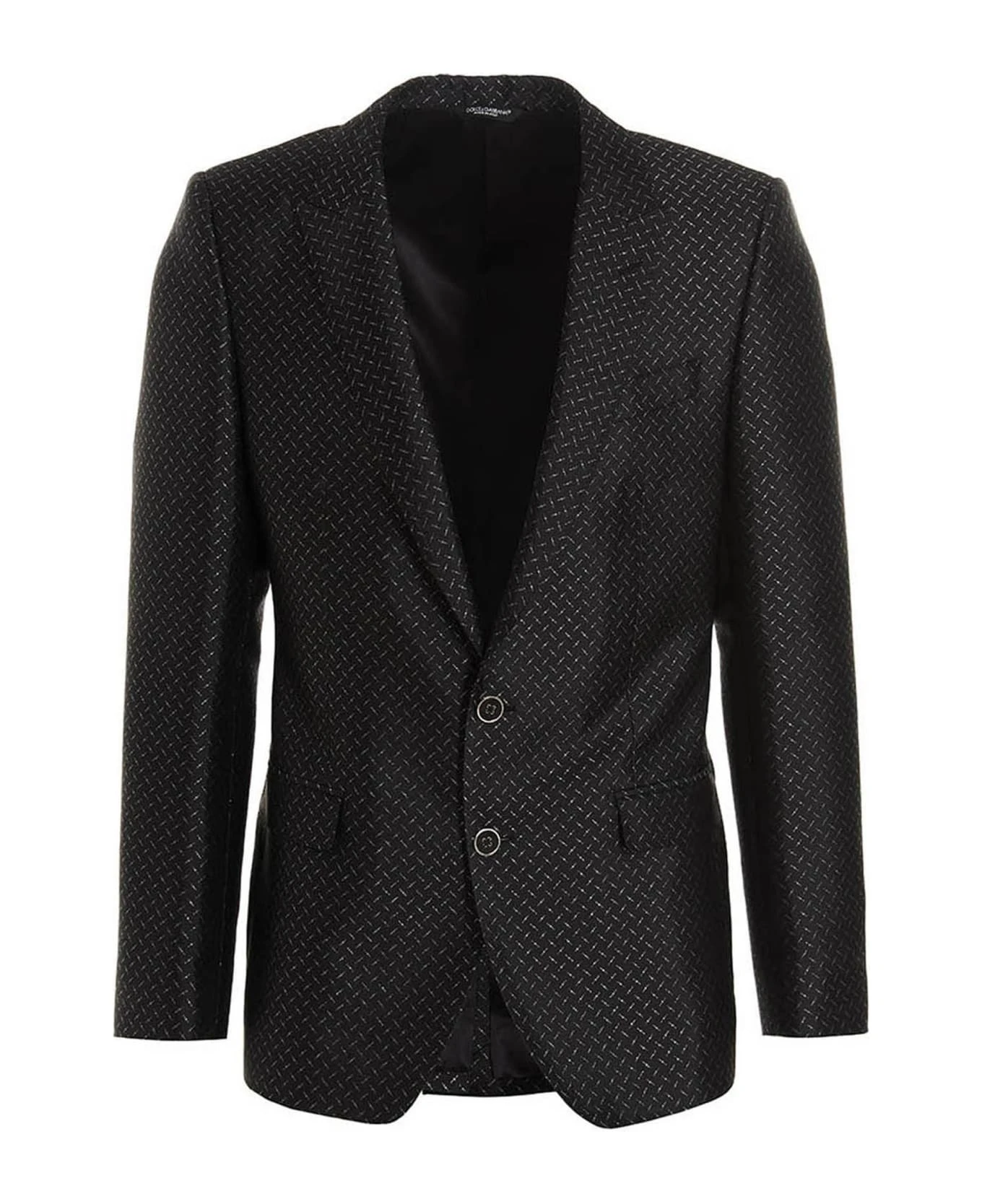 Dolce & Gabbana x Martini silk blend suit with all-over silver lurex details consisting of single breast blazer with button closure, pockets, long sleeves, back split, trousers with central crease, zip and button closure, pockets.