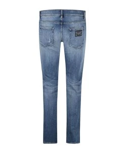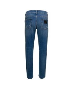 Dolce & Gabbana Blue Skinny Jeans With Logo Plaque At The Back In Stretch Cotton Denim Man