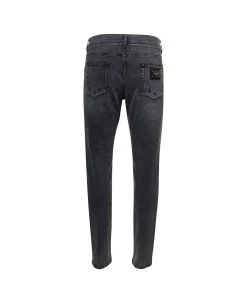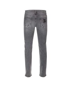 Dolce & Gabbana Grey Five-pockets Slim Jeans With Logo Plaque In Stretch Cotton Denim Man