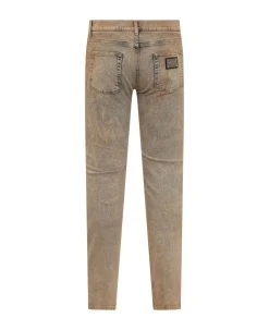 Dolce & Gabbana Brown Straight Jeans With Rips In Cotton Denim Man