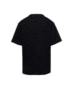 Dolce & Gabbana Black Crewneck T-shirt With Tonal Logo Lettering Print In Cotton Man