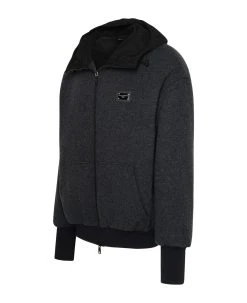 Dolce & Gabbana Grey Crewneck Sweater With Metal Logo Plaque In Wool And Cashmere Man