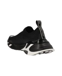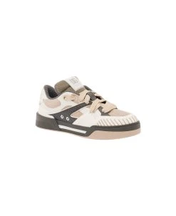 Dolce & Gabbana ‘new Roma’ Black Low Top Sneakers With All-over Logo Print In Canvas And Leather Man