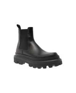 Dolce & Gabbana Black Chelsea Ankle Boots With Chunky Platform With Logo Plaque In Leather Blend Man